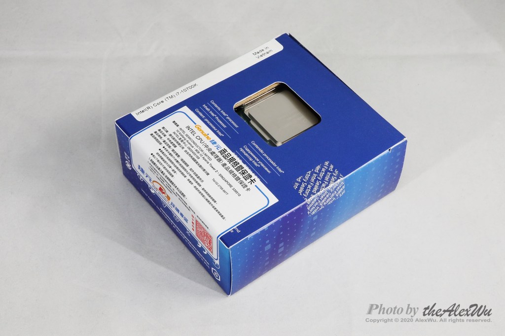 相較於Core i5-10400,Core i7-10700K的產品包裝盒比較小,主要的原因是散熱器,這款CPU原廠沒有提供散熱器,使用者必須自行購買。少了散熱器的空間,包裝盒自然比較小一些。