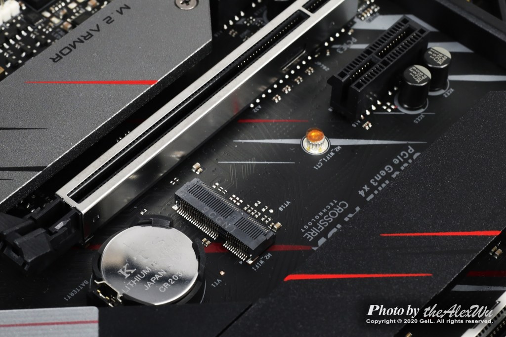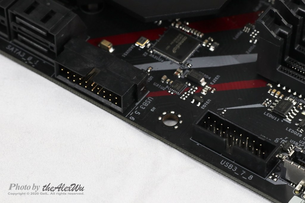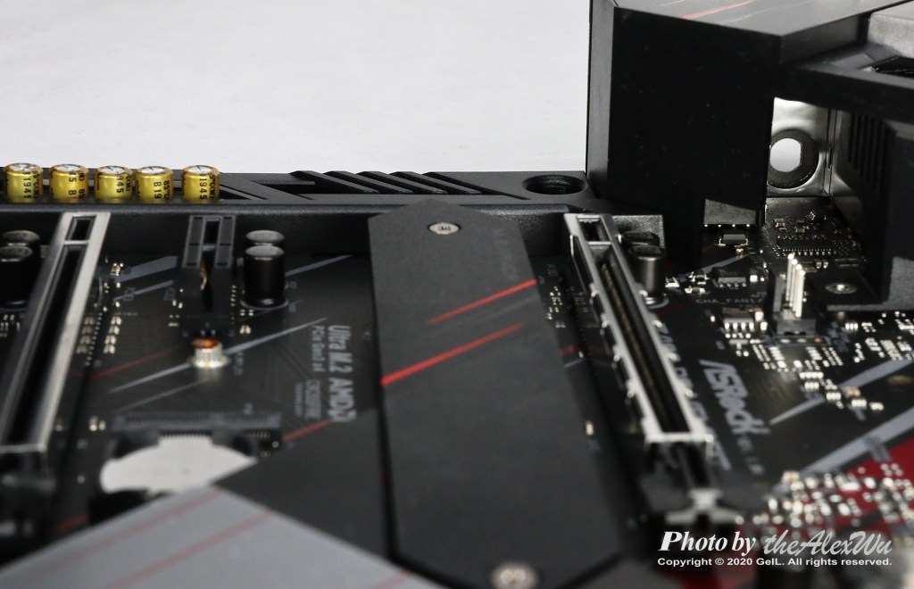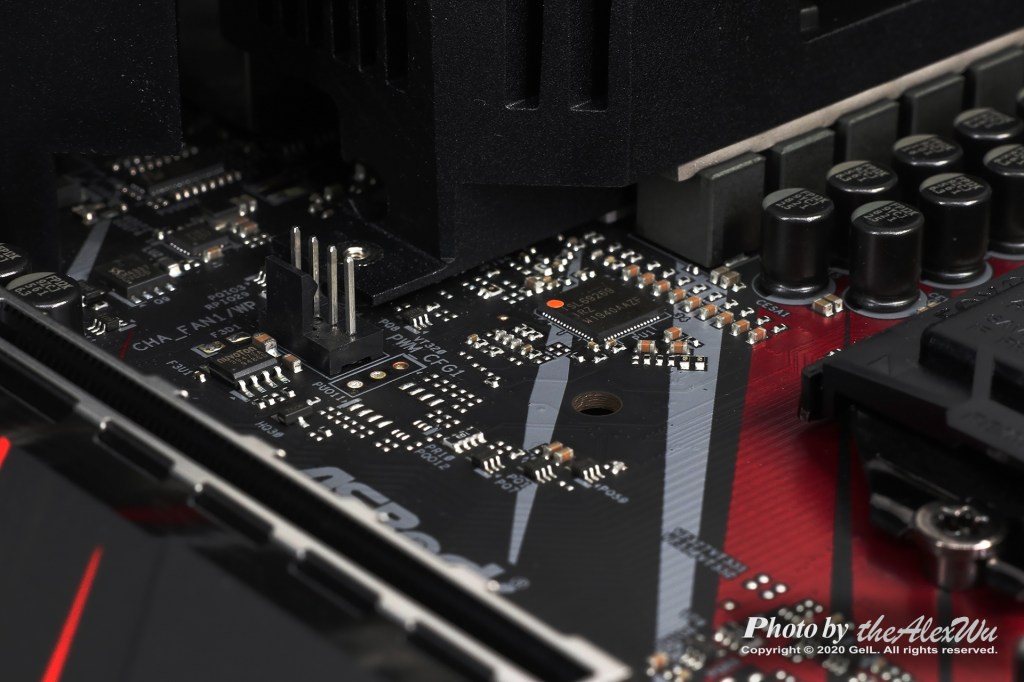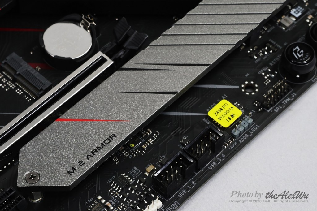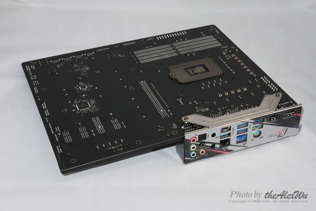 在外觀的視覺設計方面,這片Z490 PG Velocity一樣是以黑色為基調,再用紅色和灰色做點綴,配色維持了「Phantom Gaming」既有的風格。雖然是「Phantom Gaming」系列Z490板子中的最高階款式,但主板背面並沒有「美背設計」。
