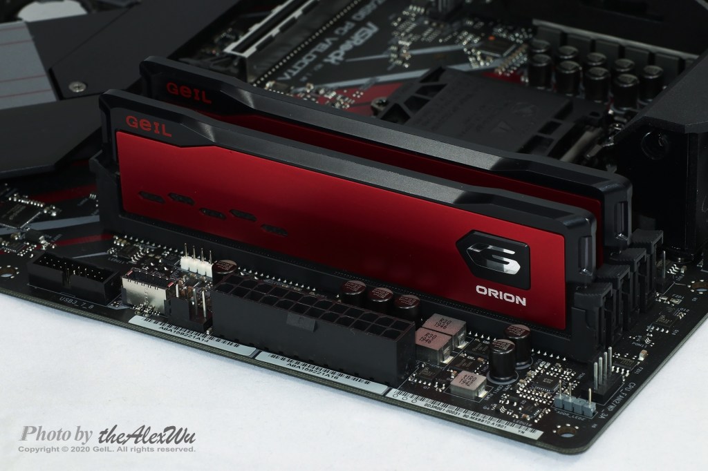 友懋ORION系列並沒有RGB光效,散熱片顏色主要是紅色和深灰色兩款。紅色款和華擎Z490 PG Velocity系列還挺搭的,組合拍照給大家瞧瞧。