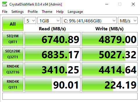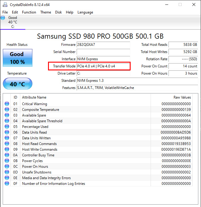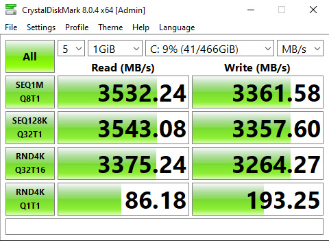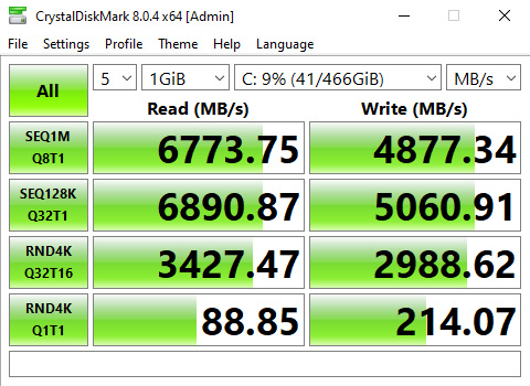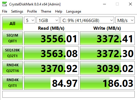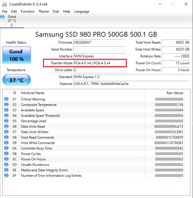 可以發現CDI秀的資料,跑的速度變成PCIe 3.0 x4了;所以,已經在使用PCIe 4.0 SSD的朋友,也可以用CDI檢查一下,看自己的SSD是不是用PCIe 4.0的速度在跑。