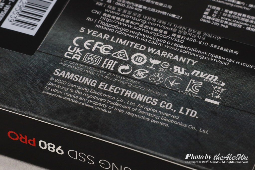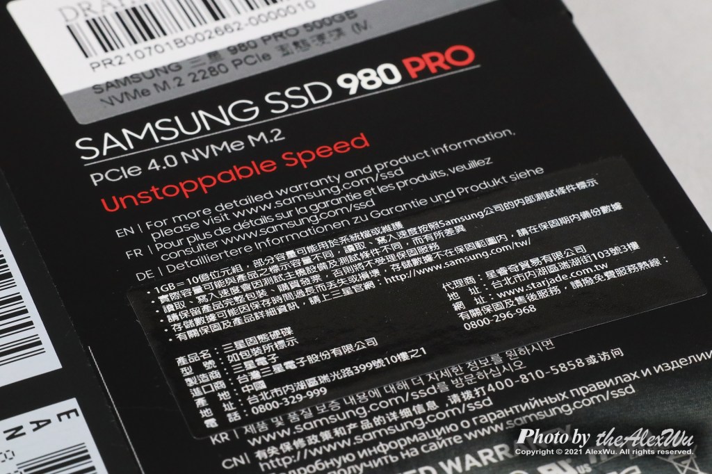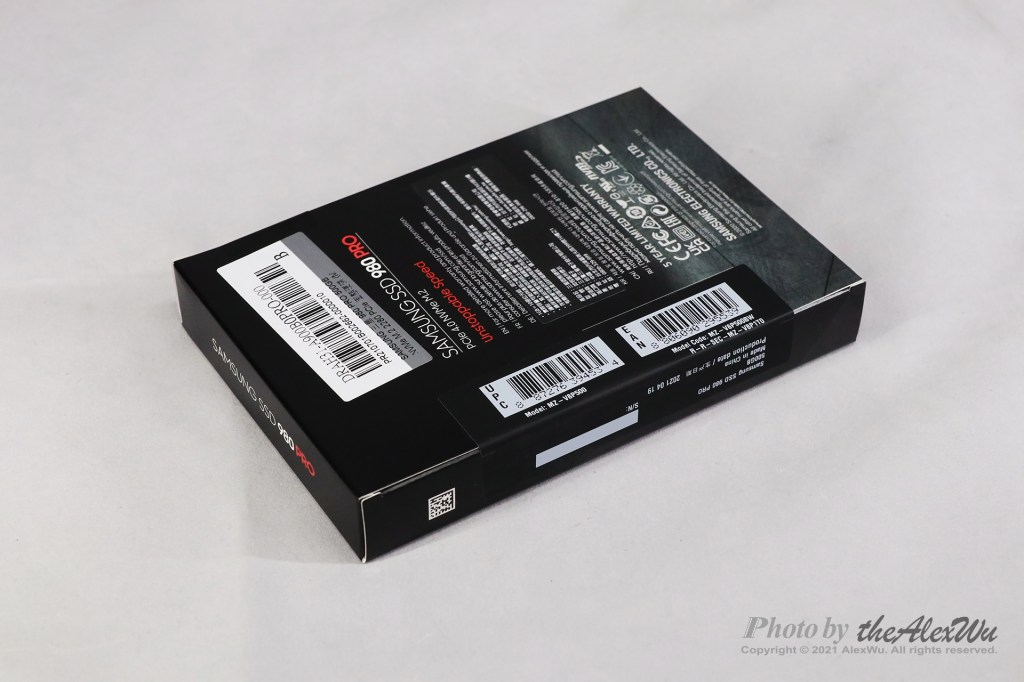 三星980 Pro 500GB是彩盒包裝,以下是彩盒正背面。