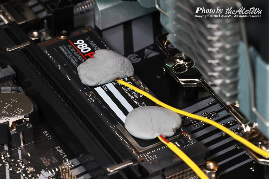 溫度變化的部分,我自己是覺得,如果可以再低一點會更好。 依官網上面的資料來看,980 Pro的工作溫度是攝氏0度到70度,雖然實測結果,最高溫度的部分還有空間,但畢竟我是開放平台測試,不是裝機測試,所以,大家裝機的時候,務必要注意機殼內的空氣對流,以免SSD過熱。是說,我拿個黏土把測溫線壓在控制器和顆粒上,那兩坨黏土卡在那兒,當然,多少也會影響散熱表現,所以,我的測試數字只能參考,並非100%準確,這部分也必須列入考慮。