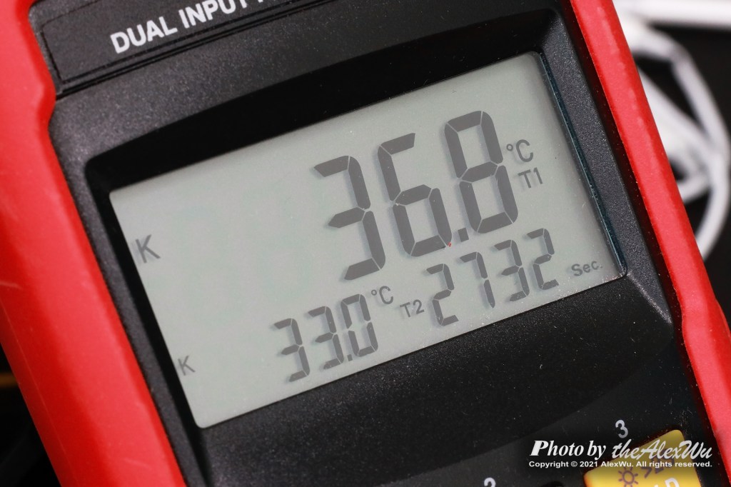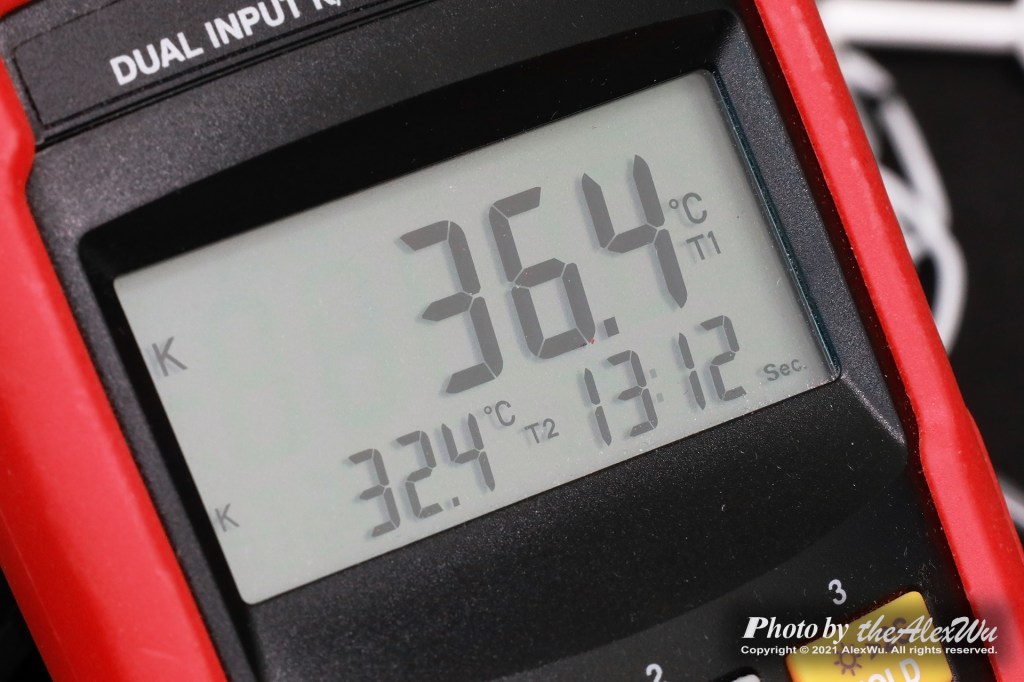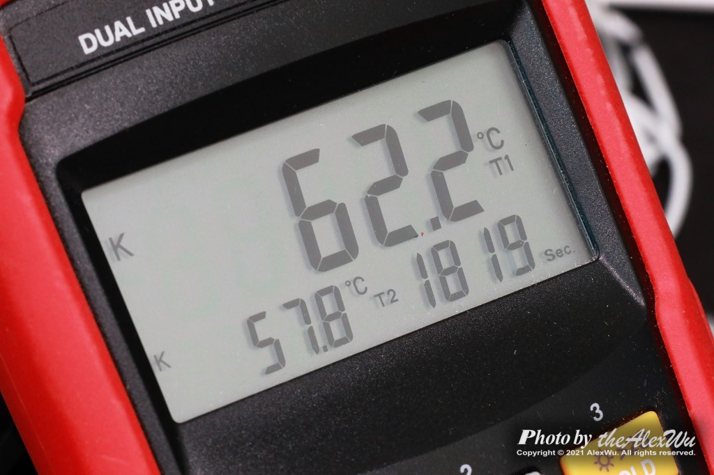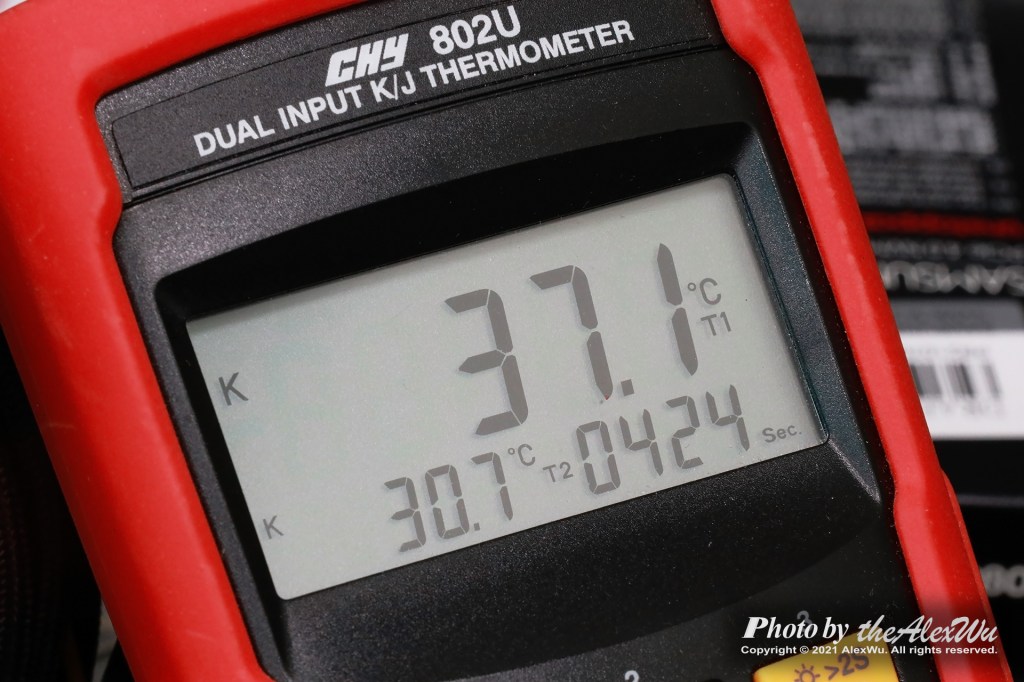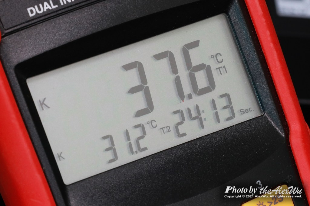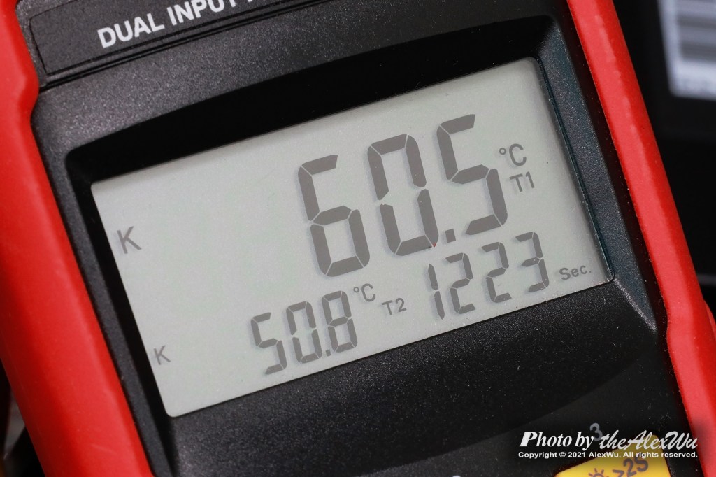 溫度變化的部分,待機大約是37.1/ 30.7(控制器/ 顆粒),水晶馬克開跑後溫度會往上拉,最高大約是60.5/ 50.8,跑完後會慢慢降溫,幾分鐘後回到37.6/ 31.2,時間如果拉得夠長,實際溫度應該還會再低一點。
