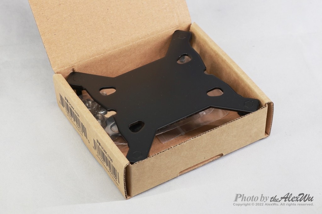 包裝盒的背面,直接把這個扣具的安裝分解圖都印上去了。我個人覺得這個設計理念,應該是採用「把使用手冊直接印在包裝盒上」的概念,畢竟只是個升級套件,直接印在包裝盒上面,就不用再多印一份安裝手冊了,不只是省了一點紙張減少浪費,使用者要參考的話,直接把包裝盒拿來看就一目瞭然了,便利性也非常高。