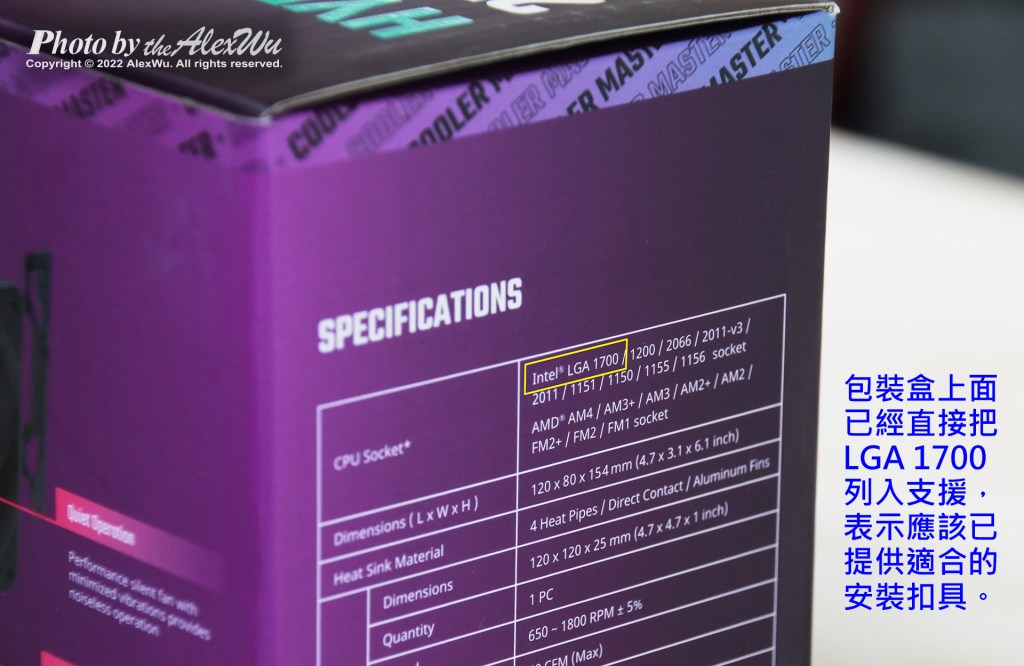 支援「無限伍」的LGA 1700安裝扣具,並不是只支援「無限伍」,在包裝盒的正上方,直接列出所有可以支援的散熱器型號,買之前務必再多看一眼,別買錯了。