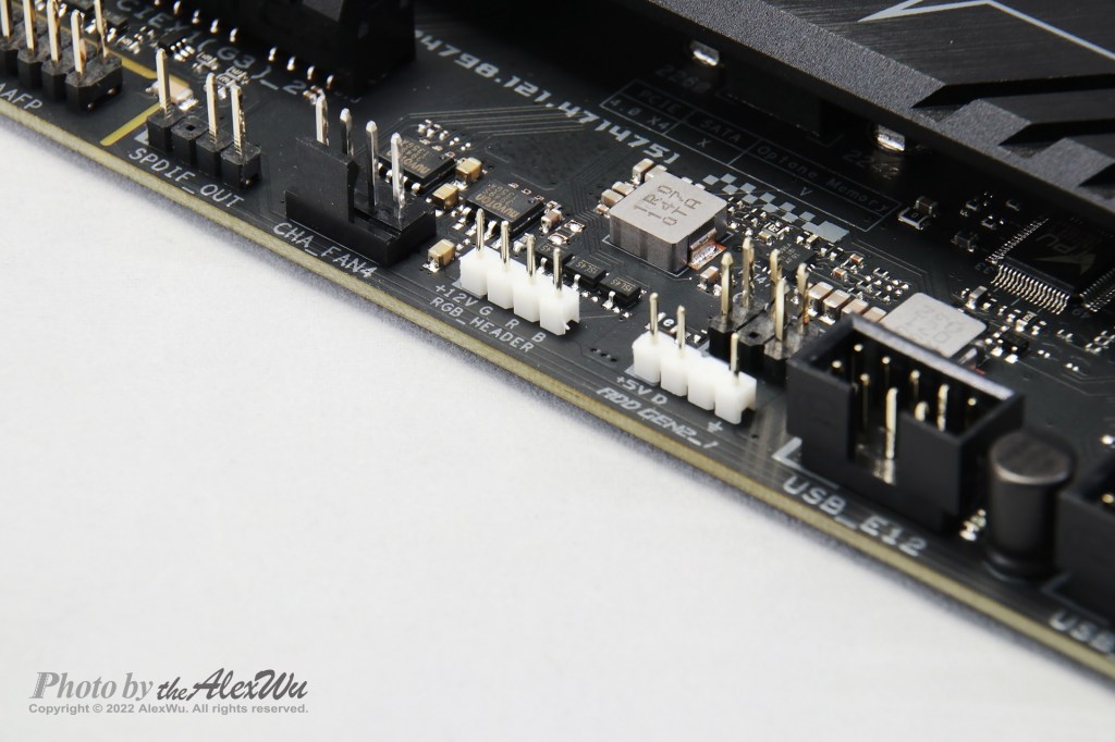 針對七彩霓虹燈的愛好者,主機板上面有一個AURA晶片,並提供三組可定址的RGB針腳,以及一組傳統的RGB針腳。
