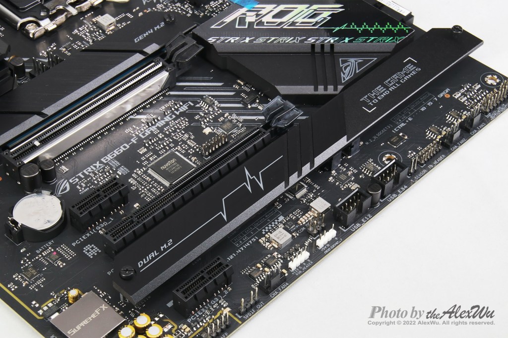 仔細觀察會覺得,這張主機板相較於其他Maximus系列的ROG主板,真的少了很多元素。但前面說過很多次了,畢竟產品定位不同,所以會有差異化的設計,我自己覺得沒差,可以接受的!