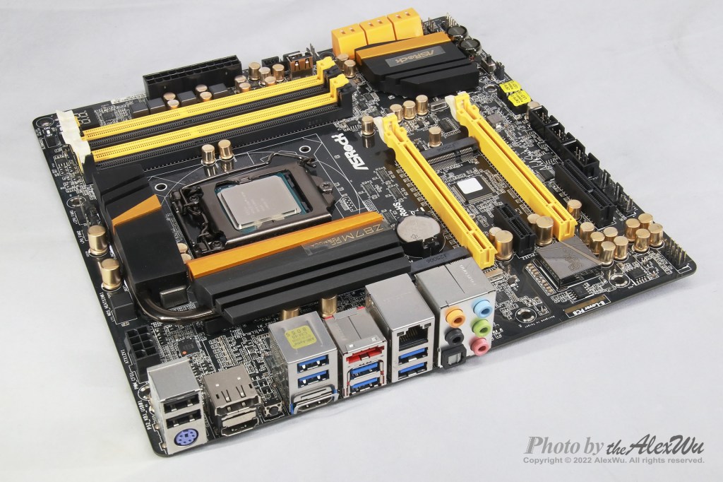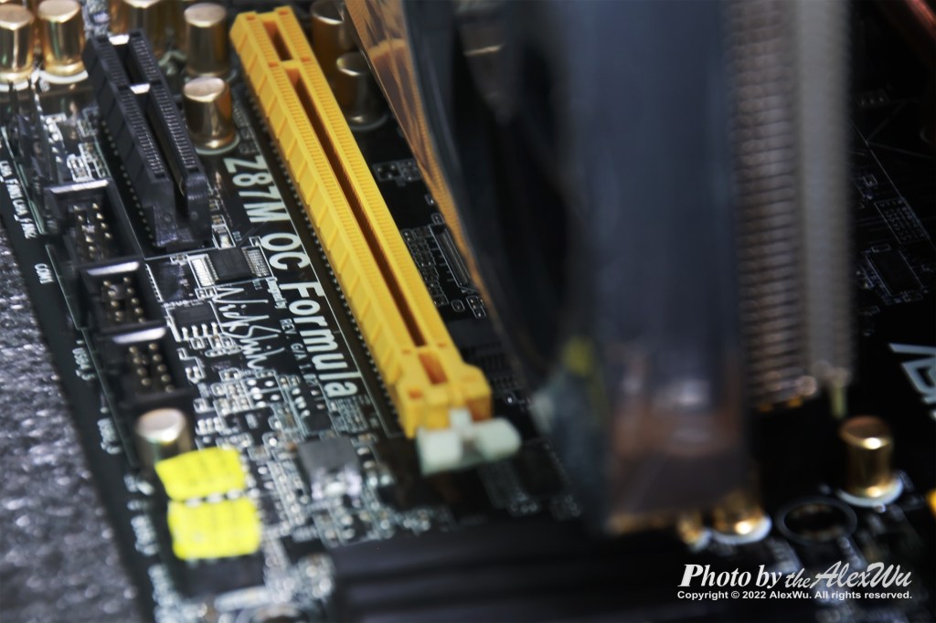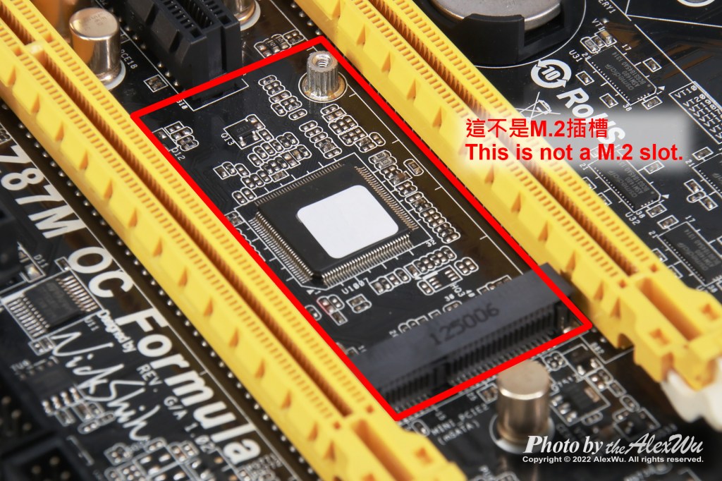 看到這兒要再稍停一下講個二句;畫面中紅色框框圈起來的部分,看上去像是現在主機板上常見的M.2插槽,但這是一張Z87主機板,那個年代主機板上面還沒有M.2插槽可以玩,所以這個插槽是什麼?答案是mSATA。