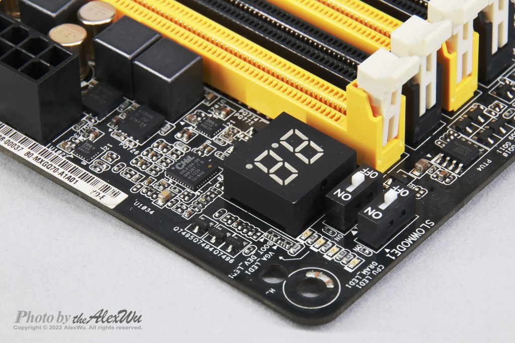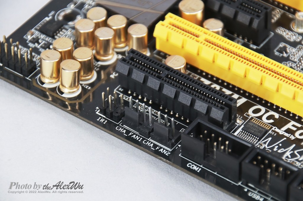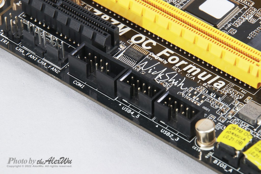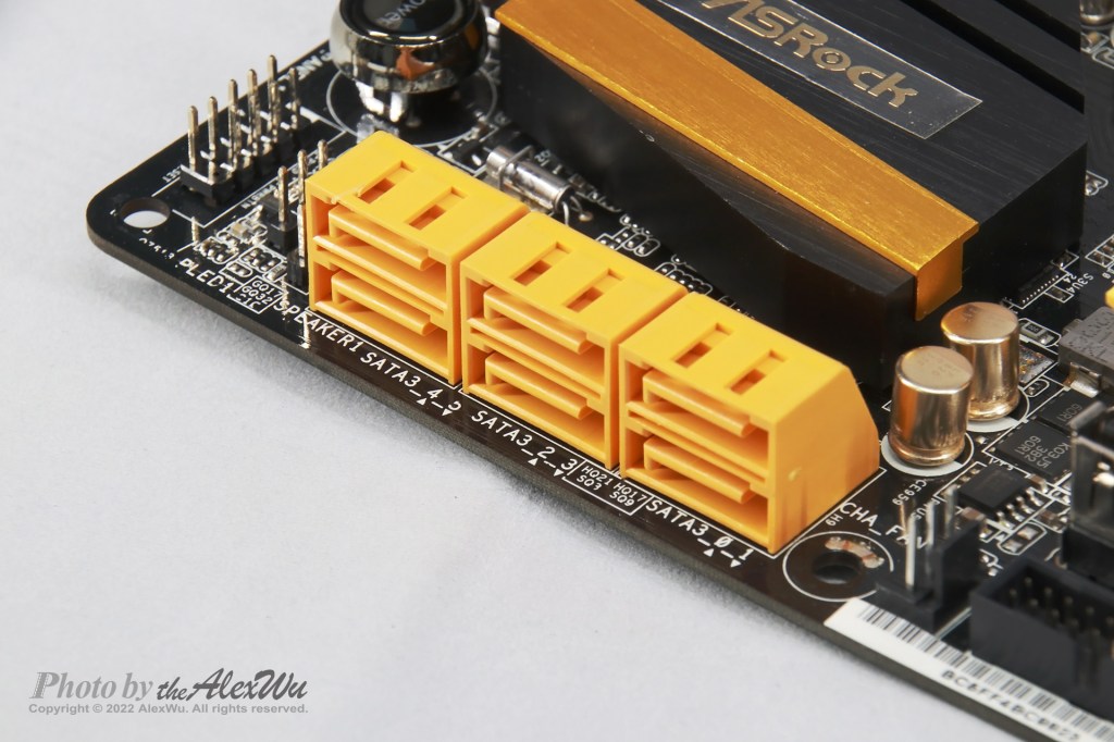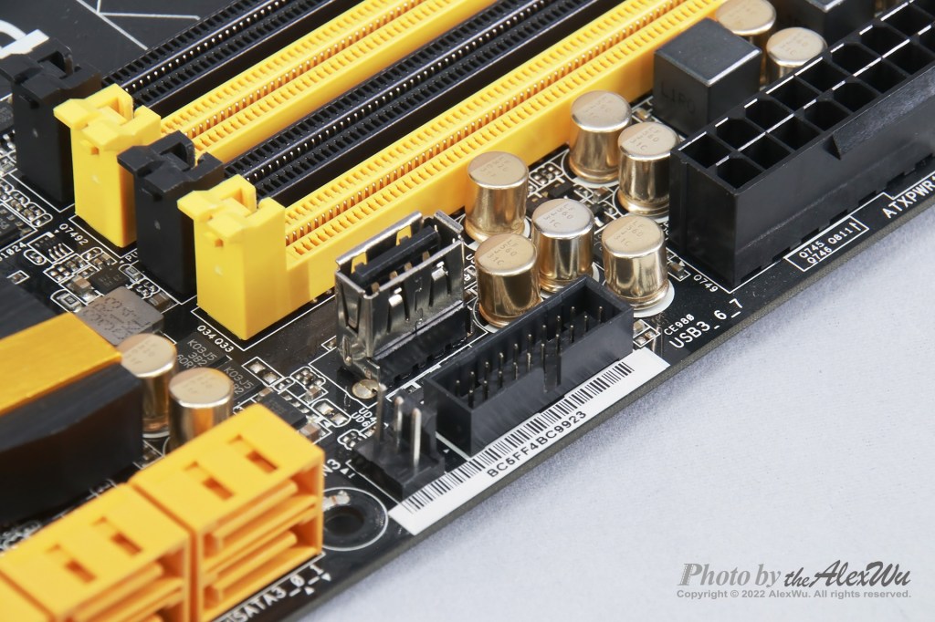 看到這裡要打岔說一下,華擎在記憶體插槽前面擺USB接頭的設計,一直沿續到現在,即使是DDR5的新世代主板,都還看得到這樣的設計。我不知道一般使用者對這個USB接頭,是否有其需求,但以測試使用而言,這個位置有USB接頭是很好用的,無論是灌系統、或者要拷貝什麼檔案,隨身碟可以直接插上去;當然,我並不覺得後IO的USB接頭不好用,很單純就是相較之下,華擎這個設計,我個人認為以測試使用的角度而言,便利性非常高。