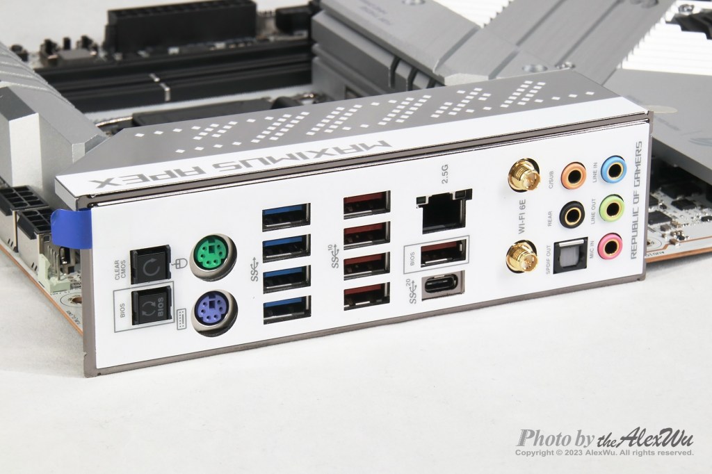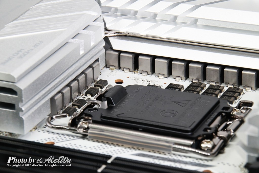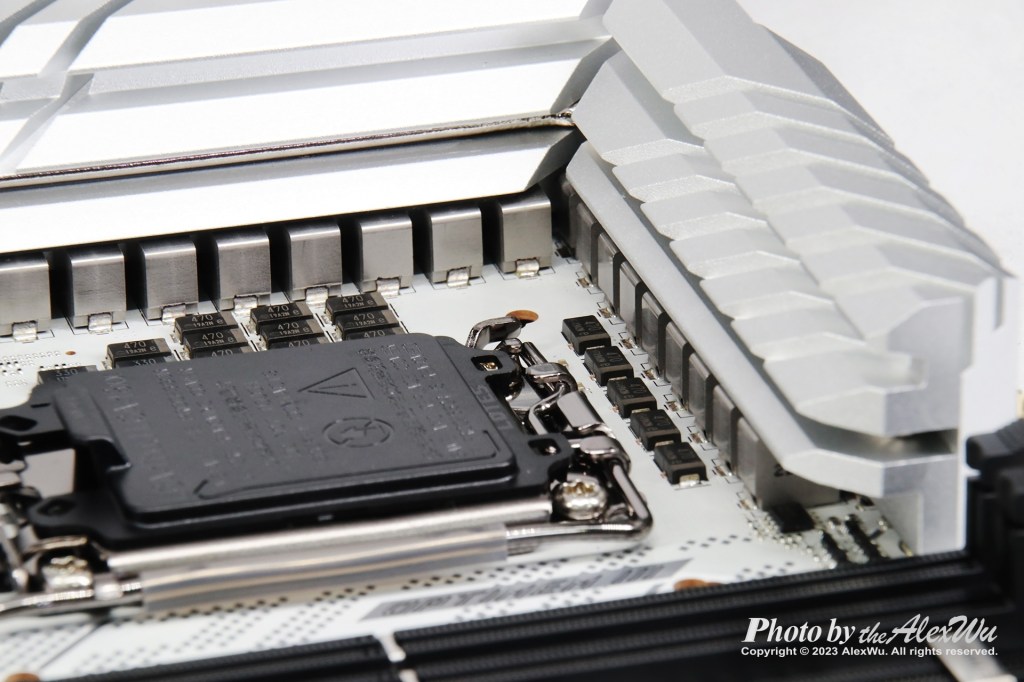白色PCB,搭配大面積的白銀色散熱部件、以及白色的後I/O擋板,這張主機板真的是……超、級、白!