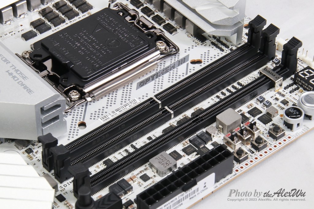 記憶體插槽只有二個,很明顯就是專為超頻而設計的,不過……就算不另做調校玩超頻,DDR5的部分我個人也建議不要四個插槽全上,除非你能接受掉速、掉CL值。