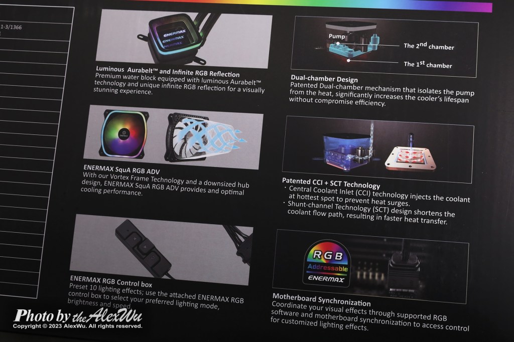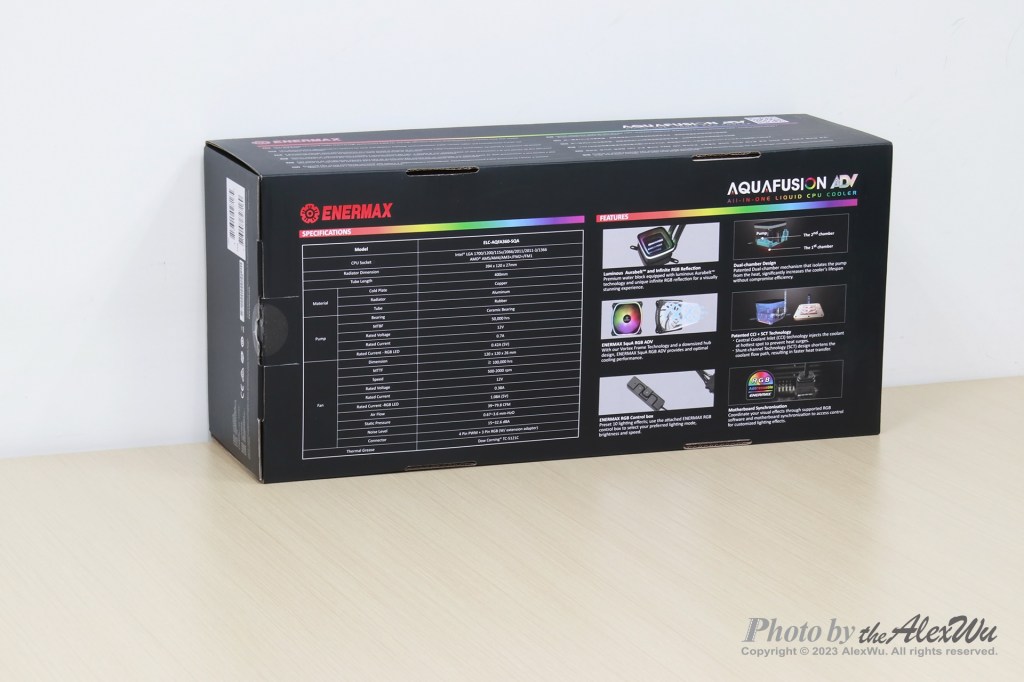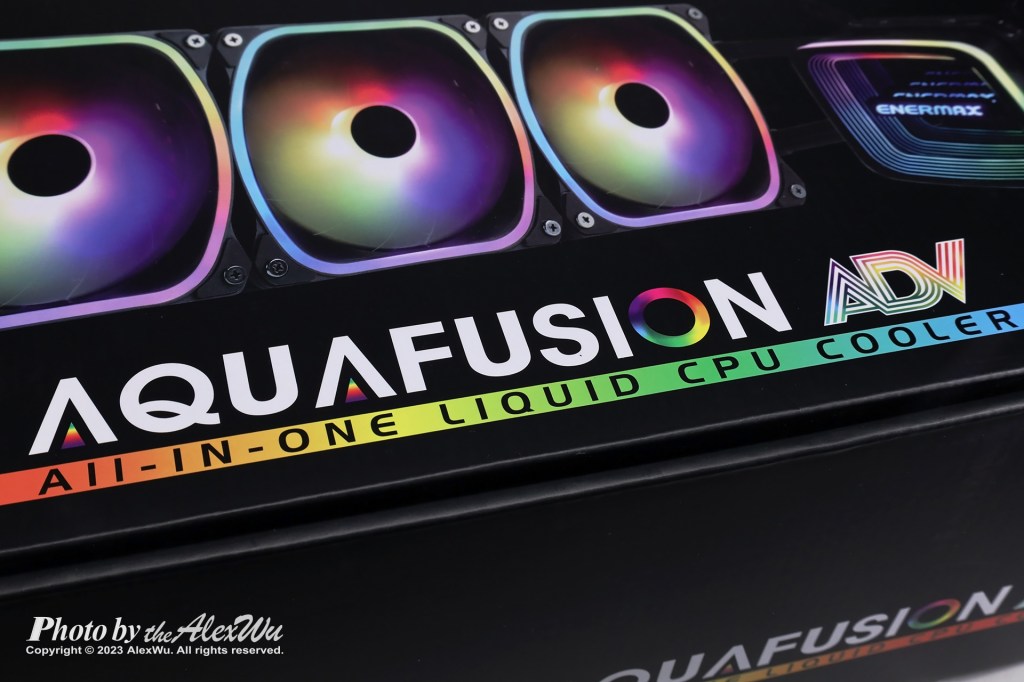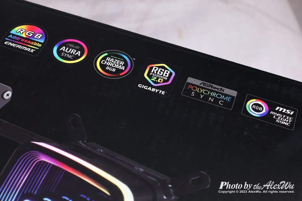 最後,產品英文名稱的設計,裡面加了RGB元素,這個大家應該都看出來了,比較特別的是那個「ADV」,它的設計靈感應該是來自於水冷頭的光效(剛好就在ADV的右上角可以對照)。