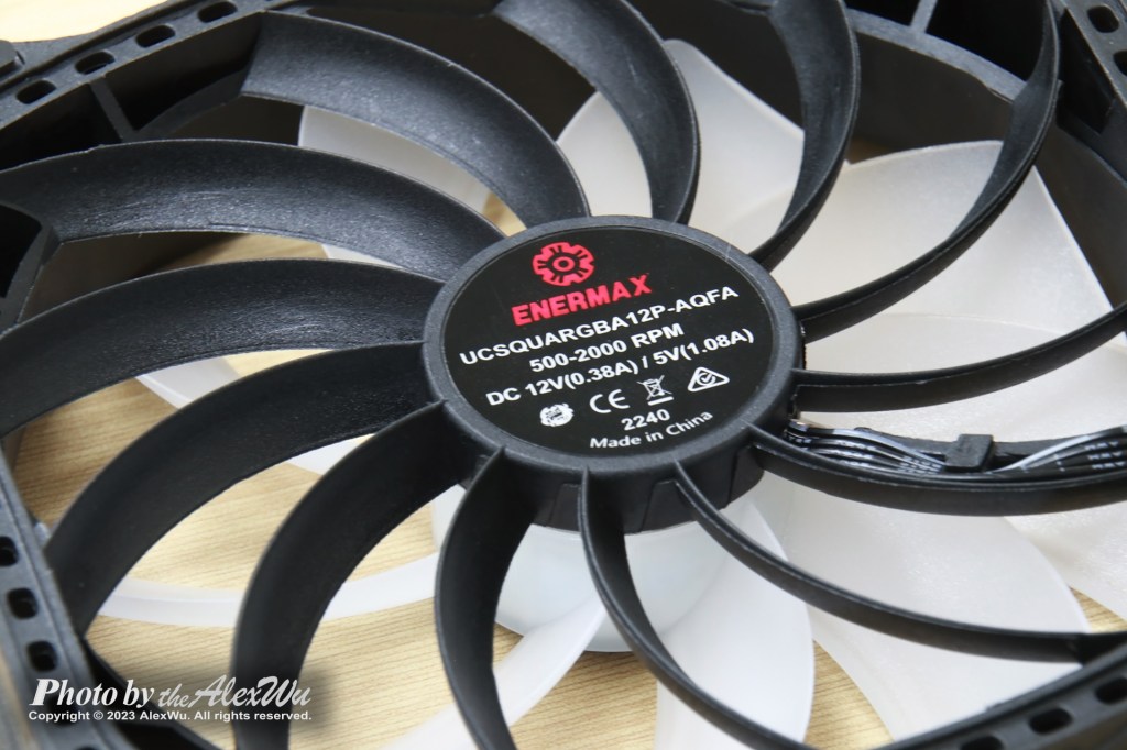 和之前幻彩晶蝶240的風扇比對一下,這次特仕版360的風扇,規格幾乎完全相同,唯一的差別是,最低轉的噪音值更低,壓到了15dBA。