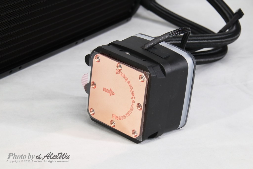 水冷頭有塑膠套做保護,冷排的部分則是在塑膠套之外,再加上一個紙質袖套,以避免意外的碰傷或刮痕。