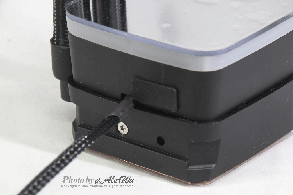 由於水冷頭有支援ARGB光效,所以提醒一下,如果你是 「水冷頭沒有RGB我無法」的族群,別忘了接線,不喜歡光害的朋友,就不用打開這個橡膠蓋了。
