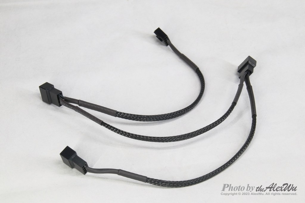 在安裝配件裡,有附上一條三轉一的線,可以把三個風扇的電源接成一個。(所以我習慣說它是三轉一,而不是一轉三)